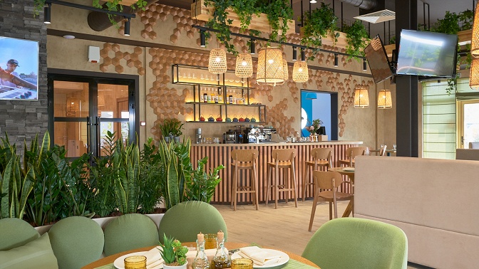 В инфраструктуру отеля входят ресторан с одноименным названием, бар, конференц-зал «Галактика», SPA-центр с парными, бассейном и джакузи, плавучая русская дровяная баня, свадебная площадка, сад, беседки с мангальными зонами, детская игровая комната, детские площадки с качелями, тюбинговая горка, канатная дорога, футбольное поле, павильон со столами для игры в настольный теннис, автомобильная парковка. На пирсе осенью установлены спортивные тренажеры, индивидуальные боксы для отдыха и швартовка катеров.