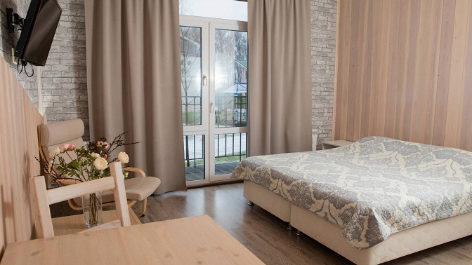 Номерной фонд представлен 60 просторными апартаментами разных категорий комфортности и изолированными коттеджами. Просторные номера с деревянной отделкой стен отличаются эргономичностью, чистотой и домашней атмосферой. Все апартаменты и дома оснащены широкими и мягкими кроватями, кухнями, укомплектованными электрическими плитами, микроволновыми печами, холодильниками и столовой посудой, телевизорами, собственными ванными комнатами, доступом к Wi-Fi.